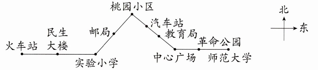 1. 如图是某市 18 路公交车的线路图,请仔细看一看,再填一填。