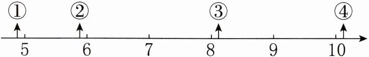 D 【解析】算式①的结果比5.1大,图中位置比5小,故不正确;算式②的结果比6.1大,图中的位置比6小,故不正确;算式③的结果比8.5大,图中位置比8.5小,故不正确;算式④的结果略大于10,图中位置也略大于10,故正确。