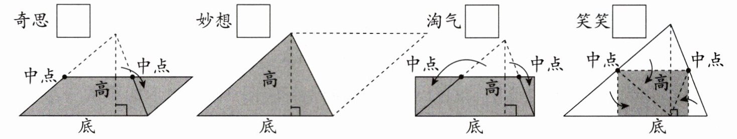 );笑笑转化成的长方形的长等于三角形的(底的一半