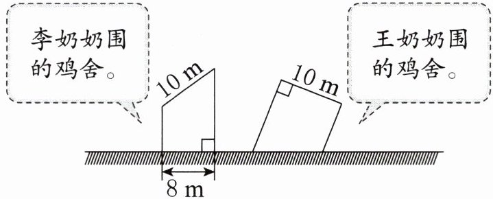 答:王奶奶围的鸡舍面积大,大20平方米。