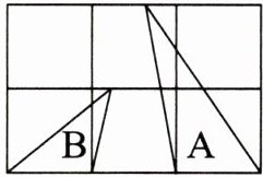 1. 如图是由6个小正方形组成的,已知三角形A的面积是$4cm^2,$则三角形B的面积是(