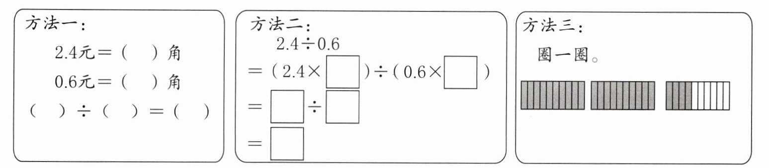 1. 基础 同学们在计算 $2.4÷0.6$ 的时候用了不同的方法,圈一圈,填一填。