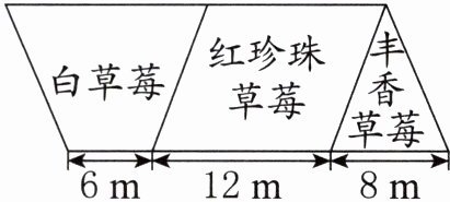 13. 王爷爷家有一块平行四边形草莓基地,他将其分为三部分,分别种上不同品种的草莓。如图,已知种植丰香草莓的面积是40平方米,每平方米种植草莓8-12棵,白草莓最多种植多少棵? 红珍珠草莓最少种植多少棵?