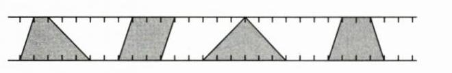 10. 在下图中画一个平行四边形、一个三角形和一个梯形,使它们都与图中的梯形高相等,面积相等。