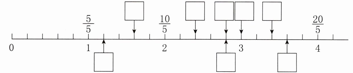 3. 提升 如图,在上面的$□$里填上适当的假分数,在下面的$□$里填上适当的带分数。(教材P68第5题变式)