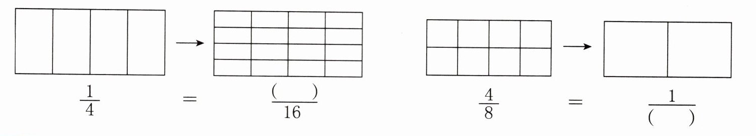 $\frac{1}{4}=\frac{1×2}{4×2}=\frac{2}{8}$ $\frac{1}{4}=\frac{1×4}{4×4}=\frac{4}{16}$