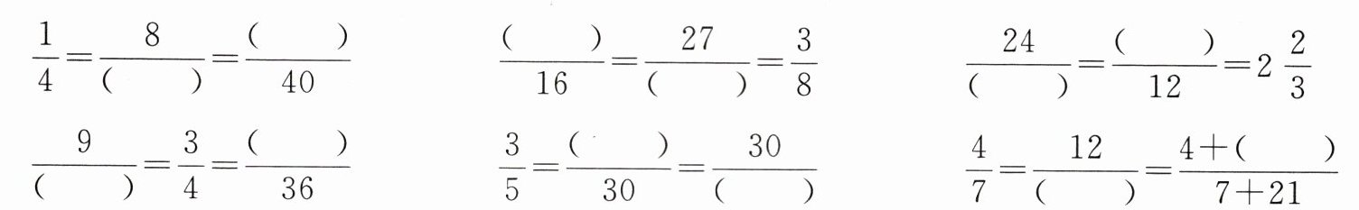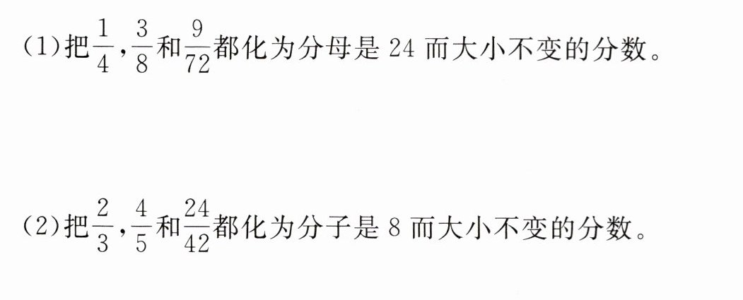 (2)$\frac{2}{3}=\frac{8}{12}$ $\frac{4}{5}=\frac{8}{10}$ $\frac{24}{42}=\frac{8}{14}$