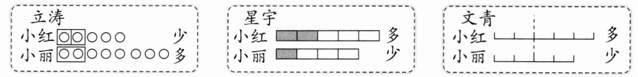 4. 立涛的方法是正确的。由于二人买的相同的书,所以花的钱数应该是相同的,星宇的方法中花的钱数不相等,因此是错误的;文青的方法中花的钱数相等,但是与题目中描述的分数不对应,因此是错误的;立涛的方法满足题目中描述的条件,所以是正确的。因此小丽原有的钱多。