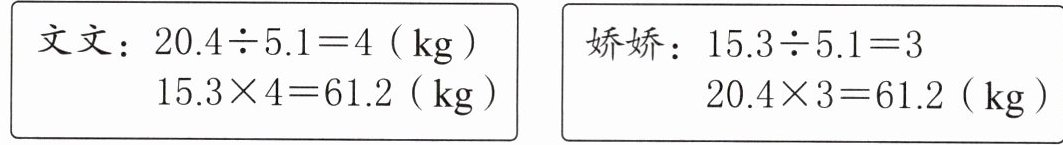 (1)文文:先求出制作每千克成品茶需要多少千克新鲜茶叶,然后用15.3乘制作每千克成品茶需要的新鲜茶叶质量,就是制作15.3千克成品茶需要的新鲜茶叶质量。(答案不唯一)