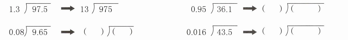 1. 基础 照样子,把下列竖式转化为除数是整数的除法。