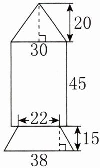 [解析]根据图示,这个火箭模型的平面面积等于梯形的面积加中间长方形的面积,加上面三角形的面积,据此解答即可。