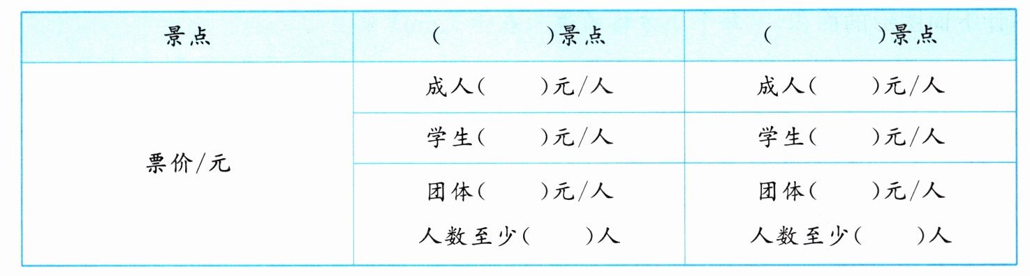 |项目|门票|交通费|午餐费|其他|合计/元|