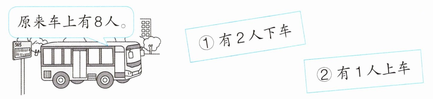 (2)____,车上还剩下几人? $□ ◯ □ =□$(人)