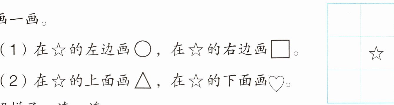 (2)在☆的上面画$\triangle$,在☆的下面画$♡$。
