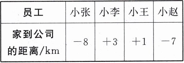 |家到公司的距离/km|$-8$| $+3$| $+1$| $-7$|