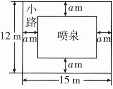 6. 如图,某中学为美化校园环境,计划在一块长为 $ 15 $ m、宽为 $ 12 $ m 的空地上修建一个长方形喷泉,喷泉的周围修建等宽的小路,路宽为 $ a $ m。