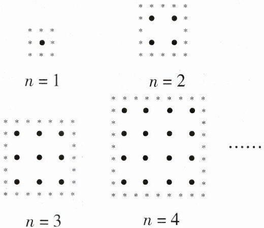 7. 在某公园内,按正方形种植牡丹,在牡丹的周围种植芍药,牡丹的列数$(n)$和芍药数量的规律如图所示(用$●$表示牡丹,用$*$表示芍药),当$n = 11$时,芍药的数量为( )