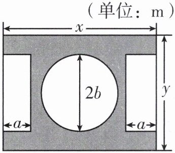 (1)阴影部分的面积为$xy-\pi b^{2}-2×2ab=xy-\pi b^{2}-4ab(m^{2})$.