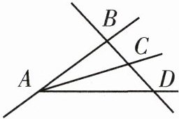 从点 $ A $ 出发,经过点 $ D $ 画一条射线,标记为射线 $ AD $。