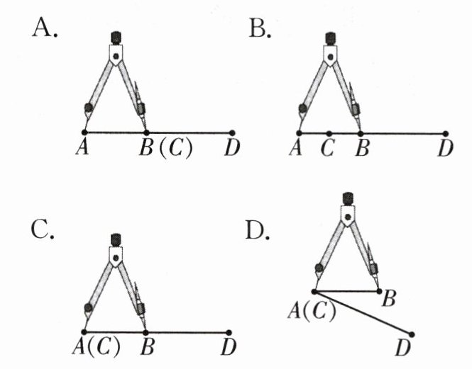 C 解析 根据用“叠合法”比较两条线段长短的方法以及各个选项所表示的操作过程可知,C项的方法是正确的.