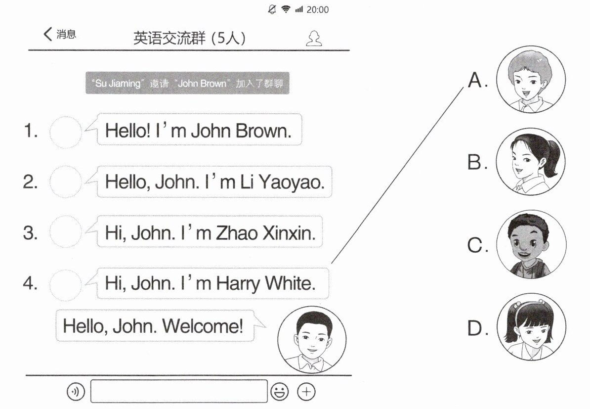 二 Su Jiaming 把 John Brown 拉进了英语交流群。读群内信息,完成任务。