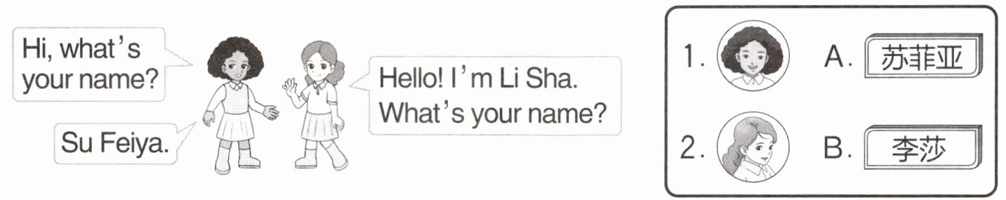 三 同学们帮 Lisa 和 Sofia 各起了一个中文名。你知道是什么吗?根据对话,连一连,帮她们找出姓名牌。