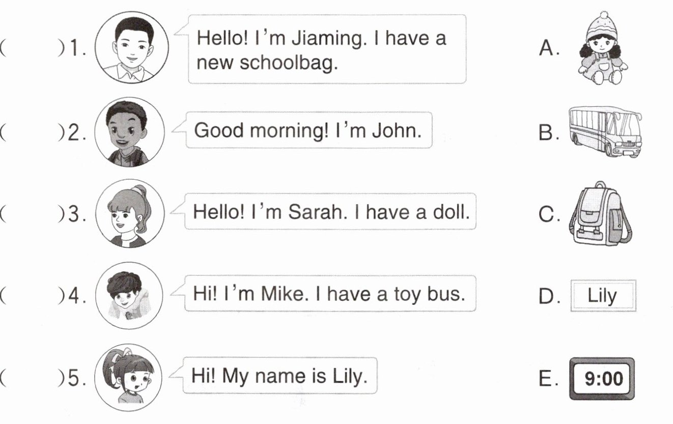 一 夏令营开营了,大家都在介绍自己。读一读,选出与他们的发言相关的信息。