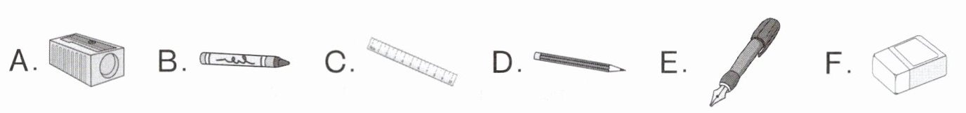 六 夏令营老师正在整理小朋友们丢失的文具。你也来帮帮忙吧!读一读,选一选。