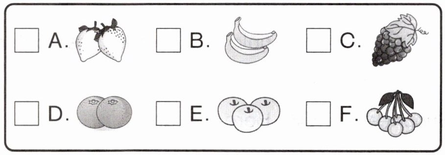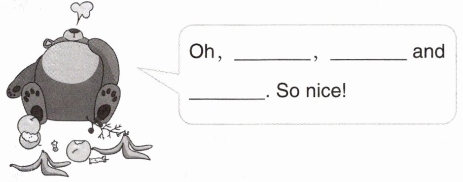 二 观察图片,看小熊吃了哪些水果。选一选,填一填。