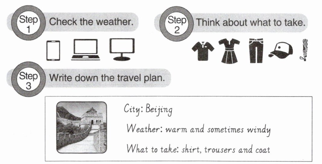 I'm going to Shanghai. It's sunny. Sometimes it's hot. I should take a T-shirt, shorts and sunglasses.