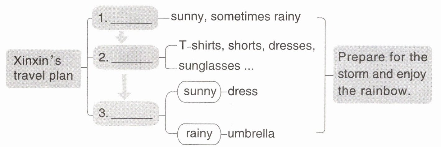 下面是 Xinxin 制订的曼谷之旅的计划。选一选,完成思维导图。