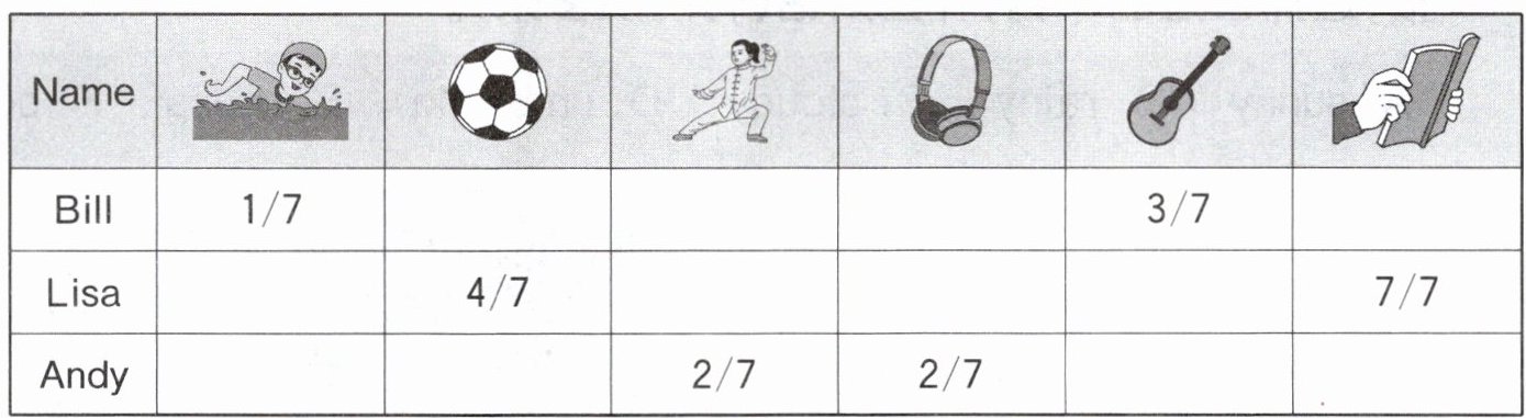 ☺ 5. Andy practises kung fu and listens to music twice a week.