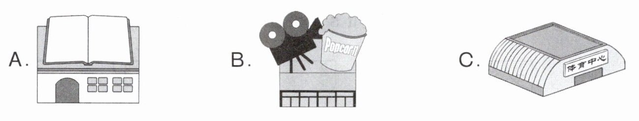 根据对话内容,选择合适的地点,并将图片编号填入圆圈内。