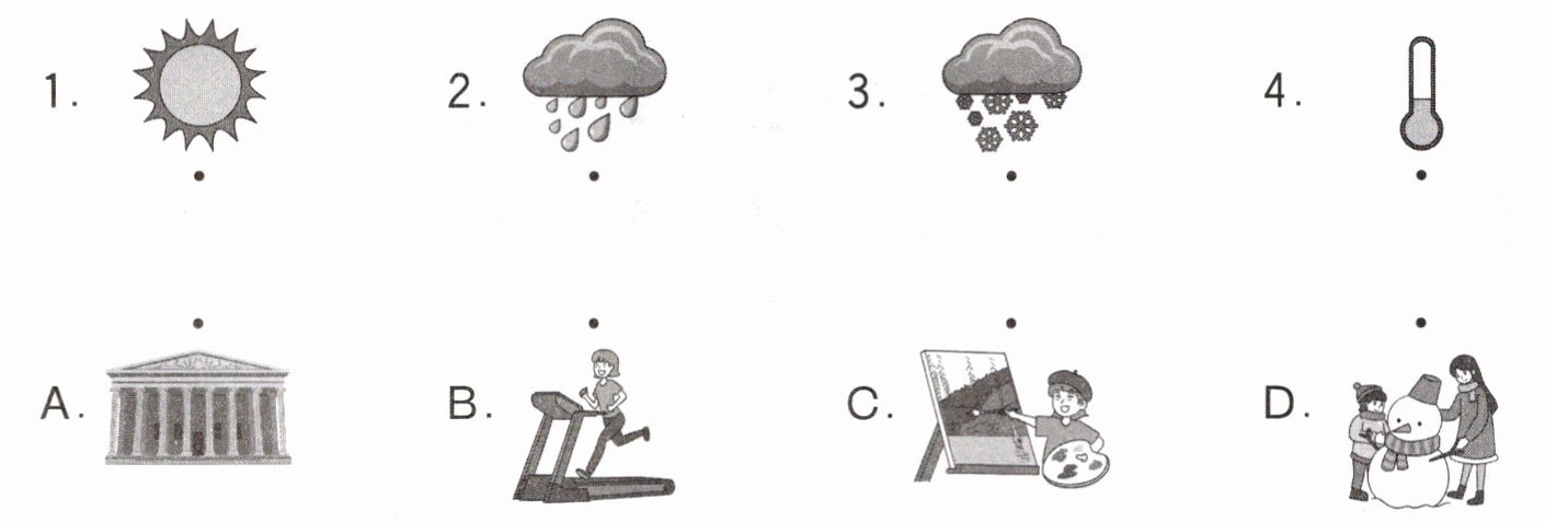 任务一:根据明信片内容,将天气与对应活动连线。
