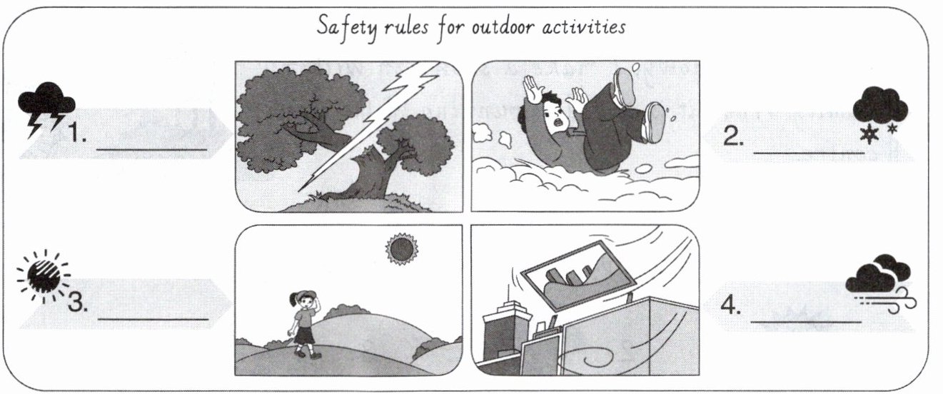 一 户外活动要注意天气状况。选择合适的句子,补全安全海报。