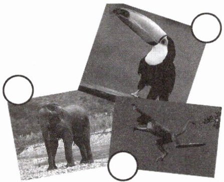 大自然有很多神奇的动物。观察图中动物的特征,选择合适的描述,将编号写在圆圈里。