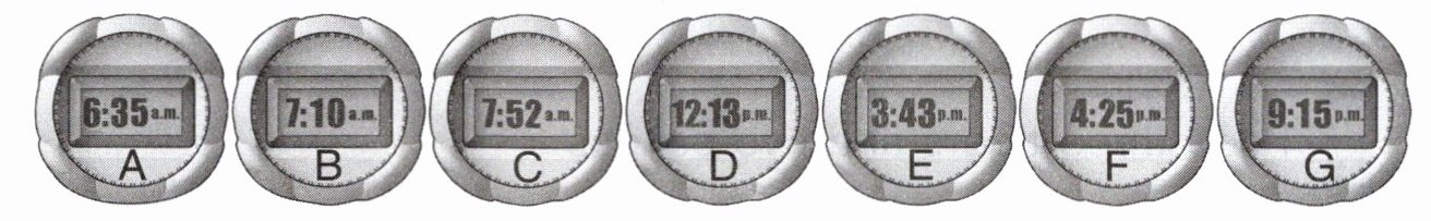 将下列钟表的编号写到对应时间表达的圆圈中。