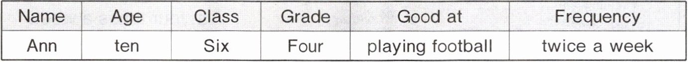 任务二:Ann;ten;Six;Four;playing football;twice a week