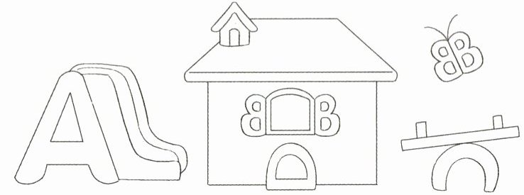Ⅴ Look,colour and write. 图片中藏了哪些字母呢? 请你找出来,涂上你喜欢的颜色,并按字母表顺序将其大小写形式写在四线内。(4 分)
