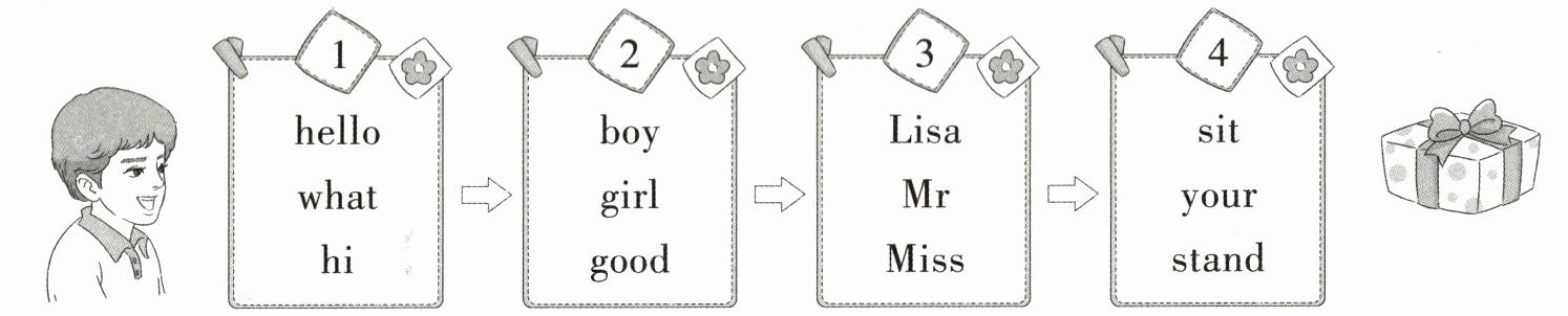 Ⅵ Look,read and circle. Harry 正在玩游戏,请你圈出每组中不同类的单词帮 Harry 通关,得到奖品。(4 分)