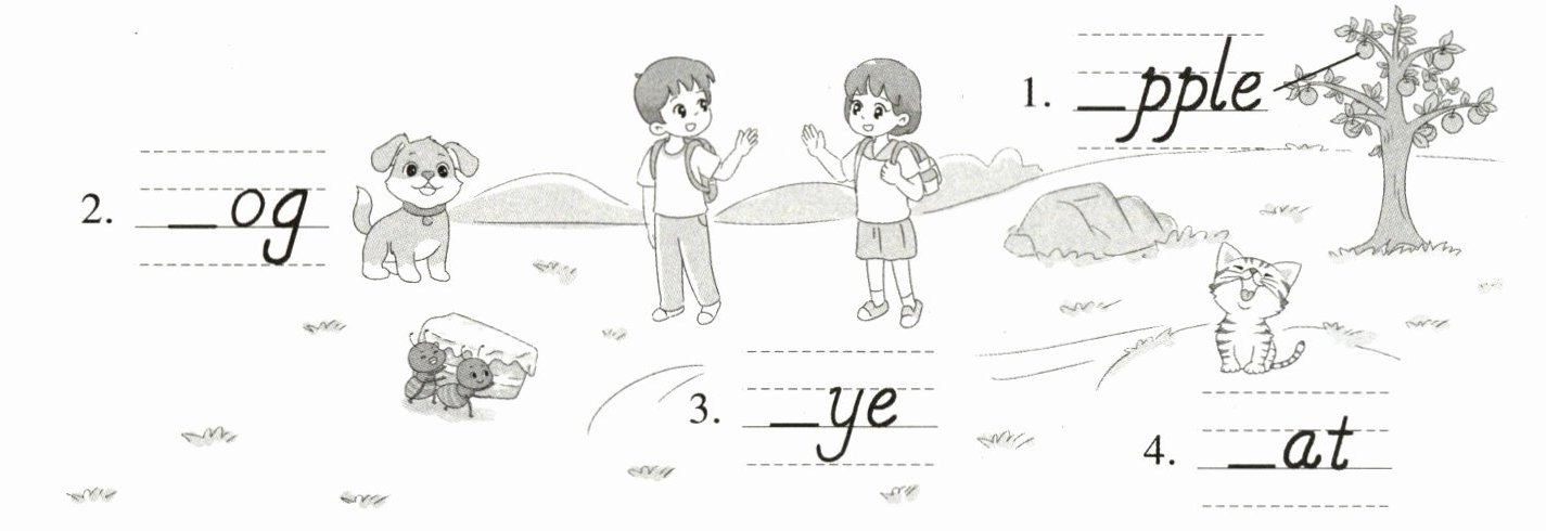 Ⅴ Look and write. 根据图片写出首字母,补全单词。(4分)