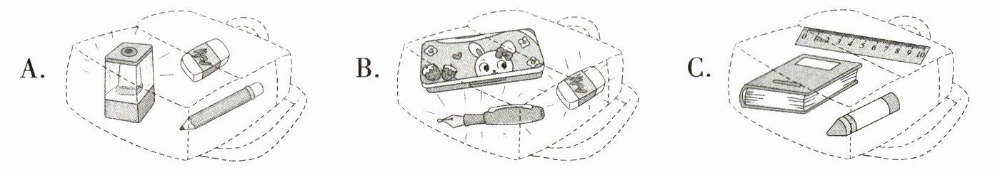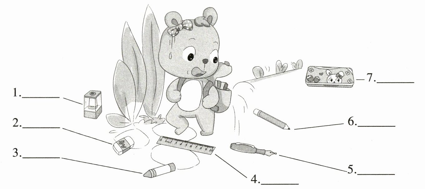 Ⅵ Look, read and choose. 帮 Kelly 找一找她丢了什么文具,将序号写在对应的横线上。(7分)