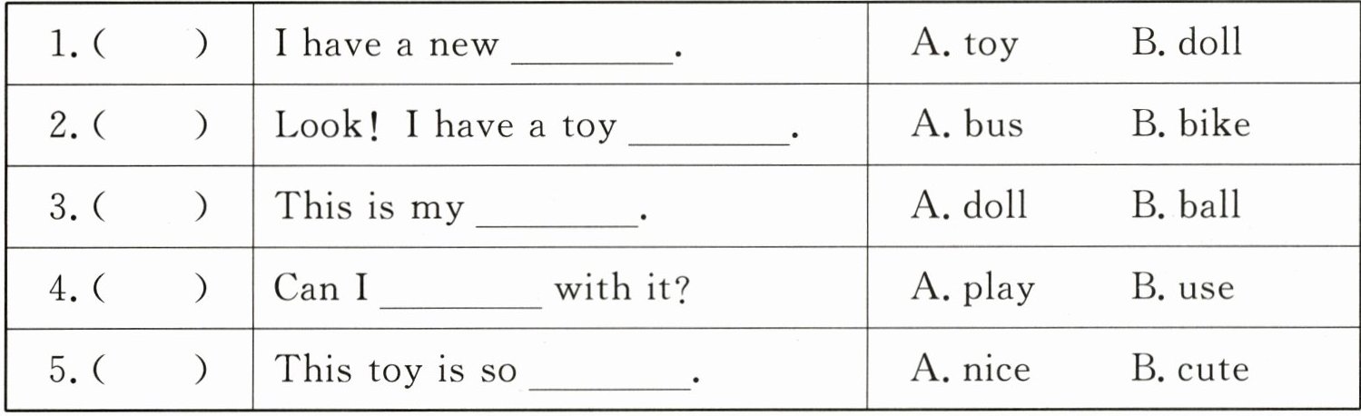 Ⅱ Listen and choose. 听音,选出句子中所缺的单词,将序号填到括号中。(每小题读两遍)(10分)