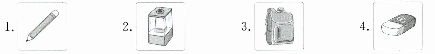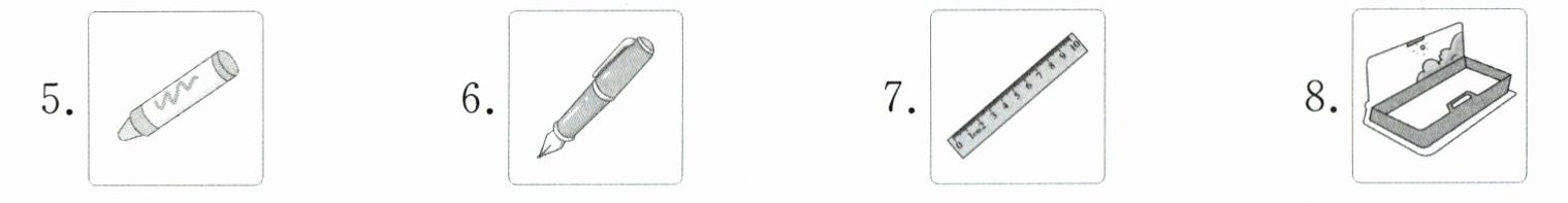 |E. ruler|F. crayon|G. pencil|H. sharpener|