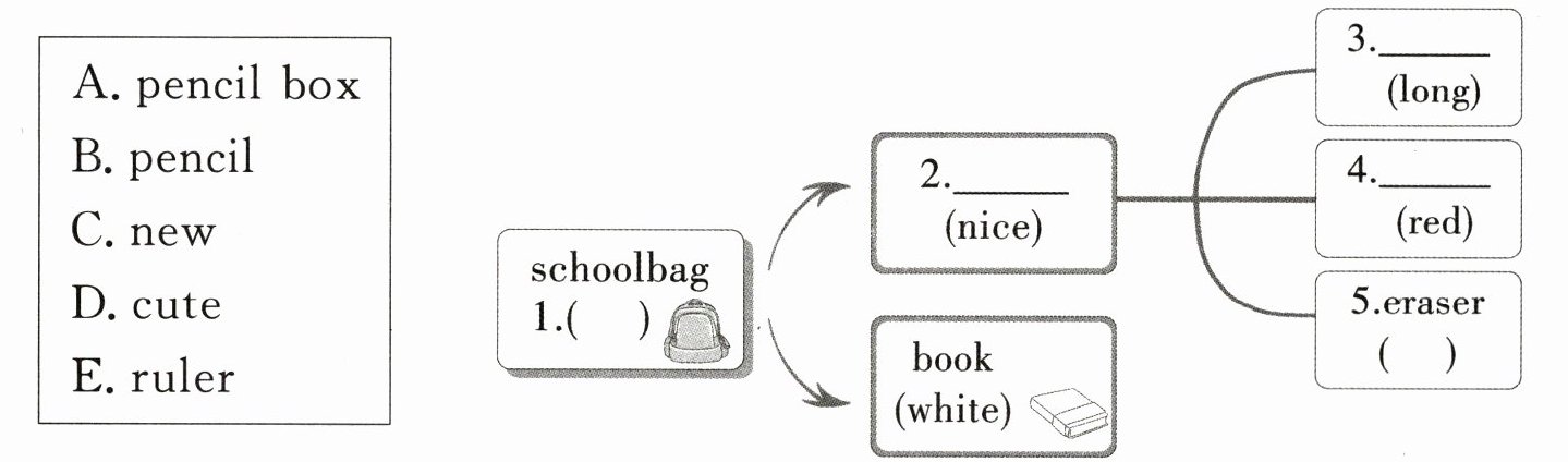 )8. We often share erasers, _ ,pencils and toys.