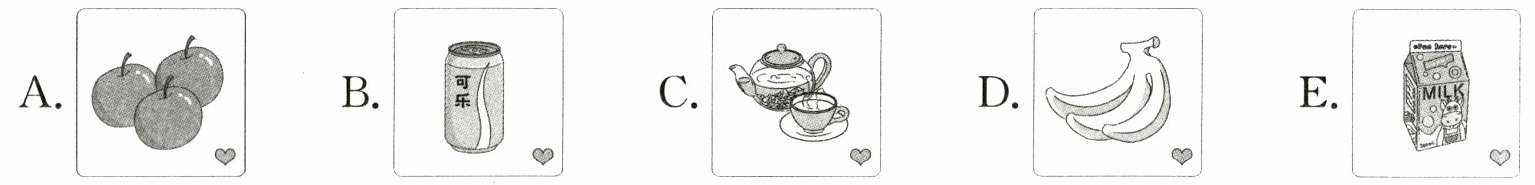 Ⅵ Look, read and choose. 食品分享会开始了,Miss Wu 正在和同学们分享他们喜欢的食物和饮品。给句子或对话选择对应的图片。(5分)