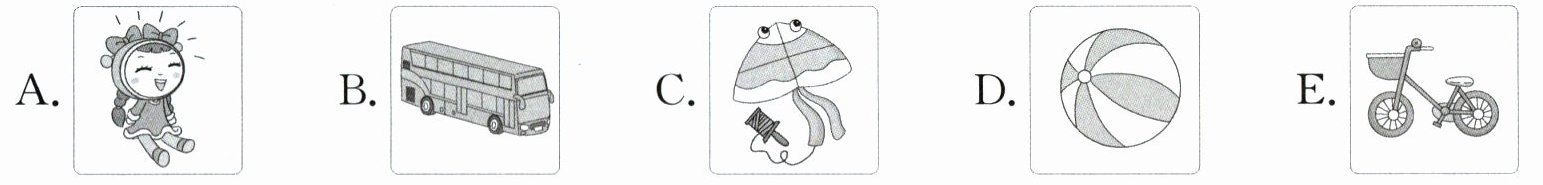 V. 1. 玩具猫 2. 玩具狗 3. 玩具自行车 4. 玩具公共汽车 5. 和……一起玩 6. 好朋友