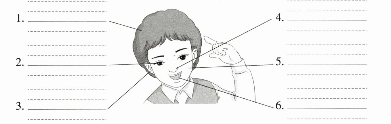 Ⅱ.1.hair 2.eye 3.ear 4.nose 5.face 6.mouth
