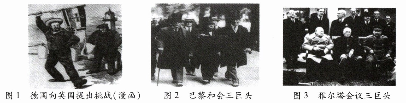(1)写出第一次世界大战前因图 1 中的“挑战”形成的两大军事集团的名称。第一次世界大战的结果如何? (8 分)