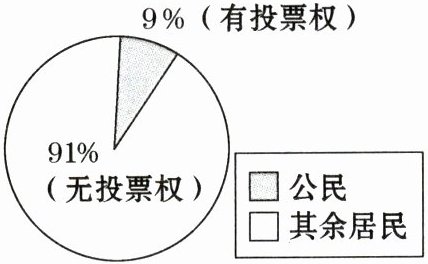8. 右图为古代雅典公民结构的比例图,观察图示信息,下列叙述准确的是